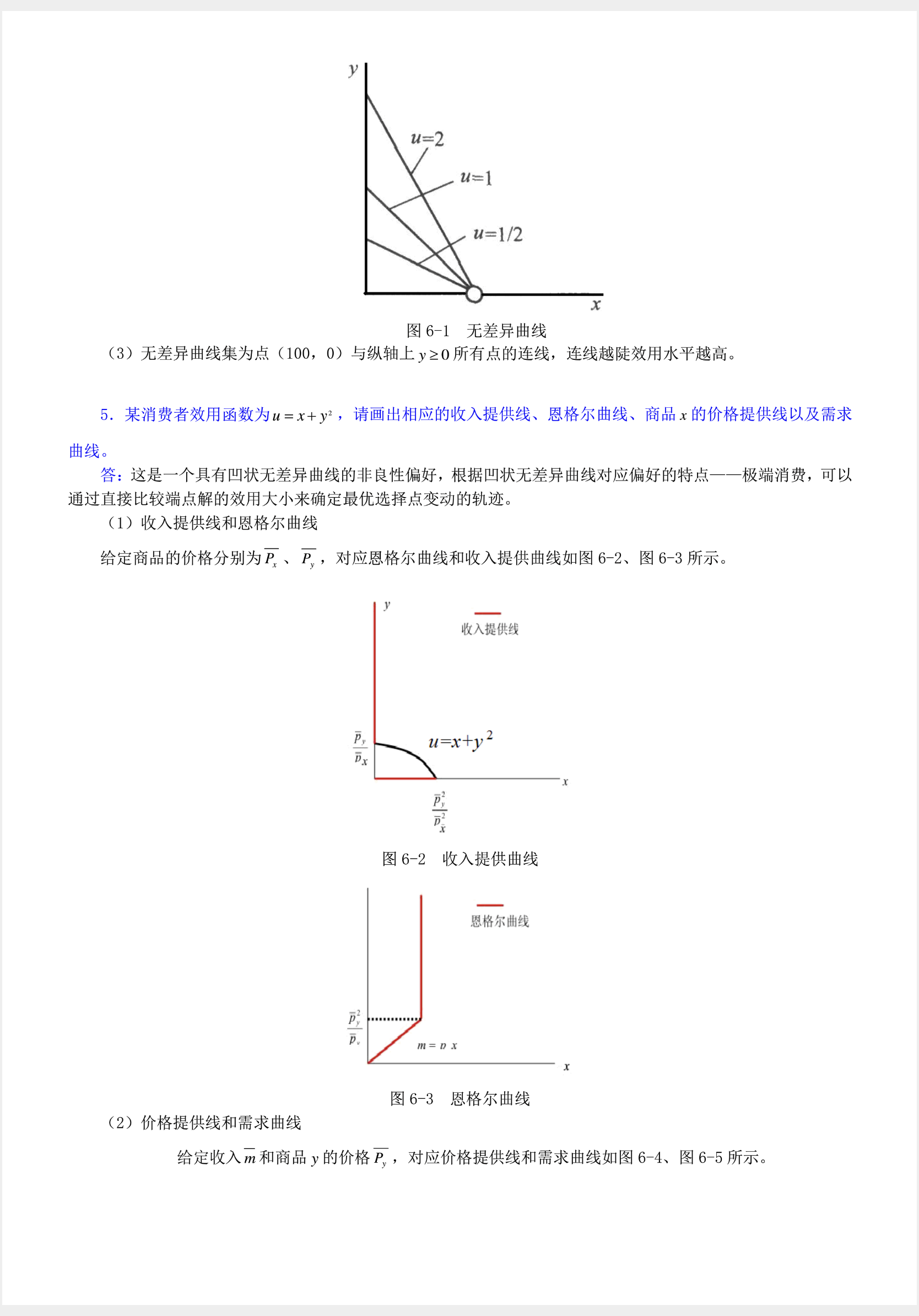 各位大佬好!我是个微观小白,最近做到一道题,实在是不太理解答案,所以还希望大佬们指点一下!题目是,某消费者效用函数为u=x+y^2,请画出相应的收入提供曲线,恩格尔曲线等等,这道题我主要不太理解答案给出的恩格尔曲线,首先放上我画的恩格尔曲线(图一),我的理解是,当m>py^2/px时,消费者只购买y,这个时候应该x的数量就等于0了,在凹偏好的某一个收入水平上,应该是只消费一种商品的吧。但是我从网上搜集到的各类资料的答案,都并不像我这样画的,而都是像图二一样,类似于拟线性偏好的图像了,我觉得网上答案的这个图的含义是当收入m<py^2/px时,全部购买x,但当m>py^2/px时,将多出来的收入购买y,我觉得好像是不对的。