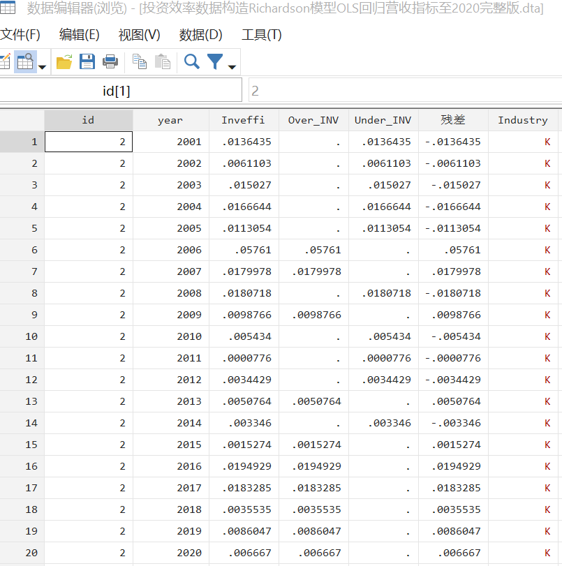 上市公司投资效率/投资不足/过度投资数据(2001-2020)