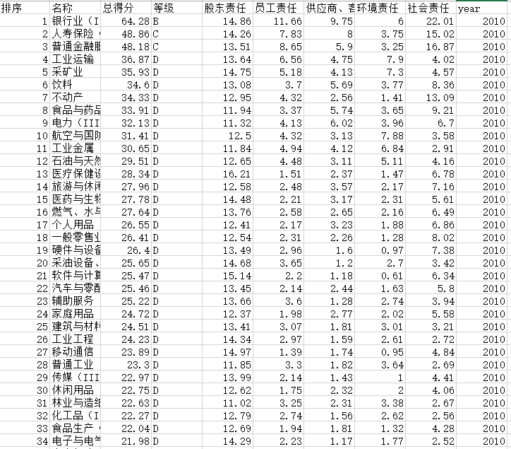 2010-2020分行业社会责任指数
