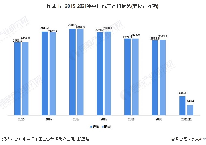 2021年第一季度,汽车行业恢复活力,产销同比大幅增长。2020年1-3月,我国汽车完成产量635.2万辆,同比增长81.7%;完成销量648.4万辆,同比增长75.6%