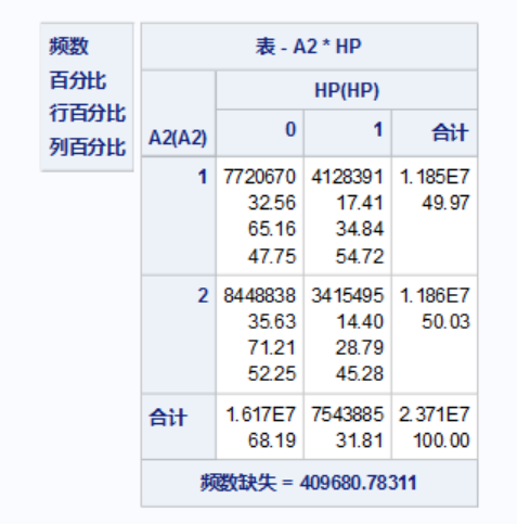请问SAS卡方分析后,结果显示频数缺失是什么意思