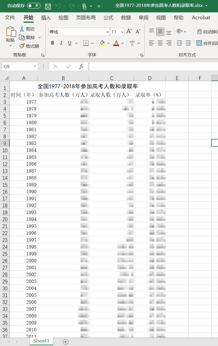 全国1977-2018年参加高考人数和录取率.xlsx
