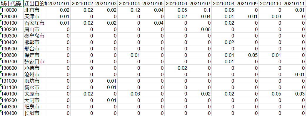 akiin 发表于 2022-1-3 12:49 百度迁徙的网站上只有每个城市的前一百个城市的百分比占比,请问你的数据是完整的三百多个城市的百分比数据 ...