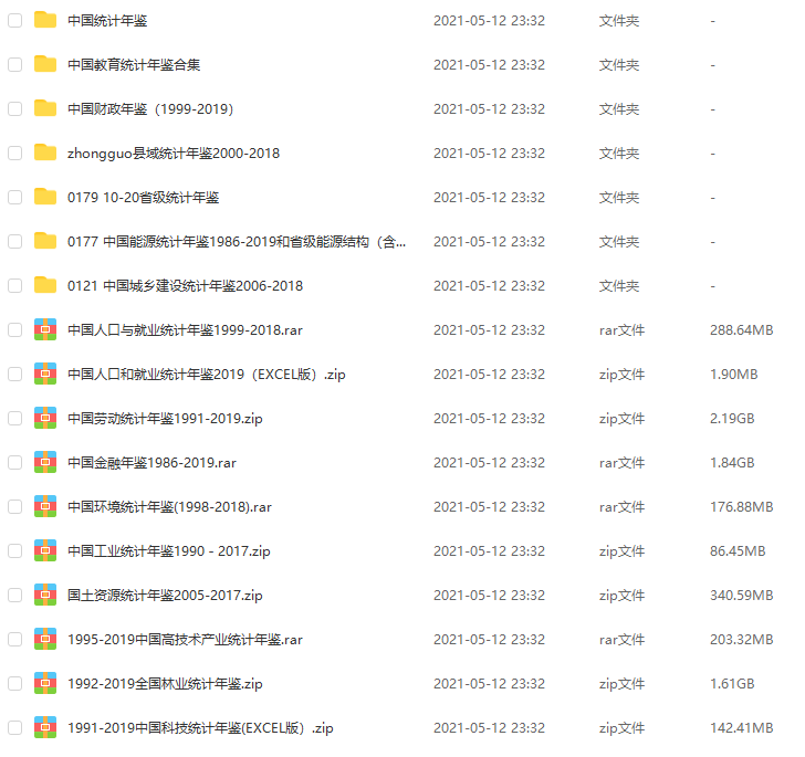1.《中国统计年鉴》:1988-2018,1995年后均为EXCEL版,1995年前年份为PDF版2.《中国教育统计年鉴》:1984-2017,均为EXCEL版
