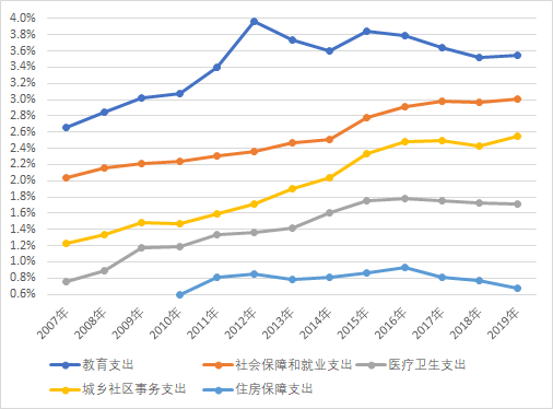 我是用国家统计局提供的国家主要财政支出项目和GDP进行计算的