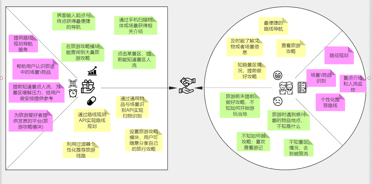为了更好的凸显旅易APP的价值主张,制作了以下的价值主张图