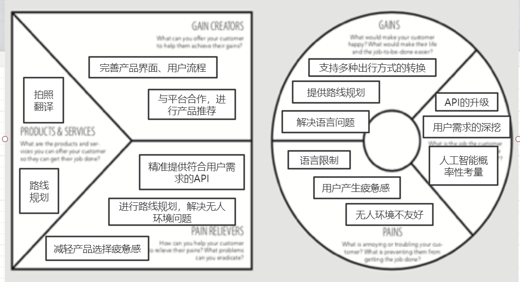 价值主张市面上现有的APP在提供旅行规划时多注重于攻略与交通工具的便捷,而在外地遇到交流困难、资讯不完整、路线繁多等问题却没有一款合适的APP,因此针对以上用户痛点,将路线规划API与地图导航结合引进产品中,同时引入从化区官方旅游资讯平台,在提供路线规划的同时,用户还可以在行驶过程中随时搜索需要的旅行资讯,即可生成想要的实时信息。人工智能在路线规划服务上十分成熟,高德地图路线规划API支持多种出行方式的转换,且范围较广