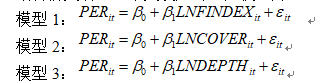 请问我想用lnfindex、cover、depth三个变量分别做对被解释变量per的固定效应回归,三个模型如图所示,请问这种代码该怎么写呢?我一直都输不出结果555