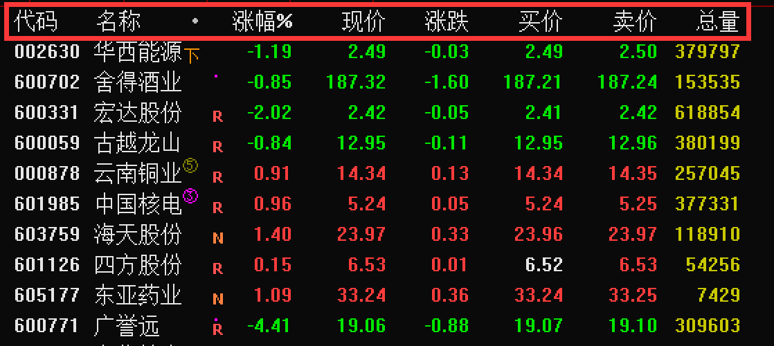 涨跌:指现在的最新价和前一天的收盘价相比,是涨还是跌了。