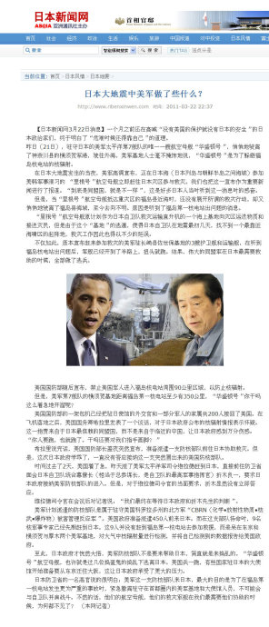 在日本大地震发生的当夜,美军高调宣布,正在日本海(日本列岛与朝鲜半岛之间海域)参加美韩军事演习的 “里根号”航空母舰立即赶往日本灾区参与救灾。我们也把这一宣布作为重要新闻进行了报道。“到底是同盟国,就是不一样”,这是好多日本人当时听到这一消息时的感奋。