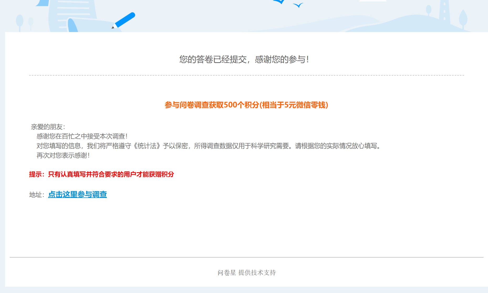 wangqiaole 发表于 2021-5-28 11:19 亲爱的坛友,如下是我们的一份研究问卷,