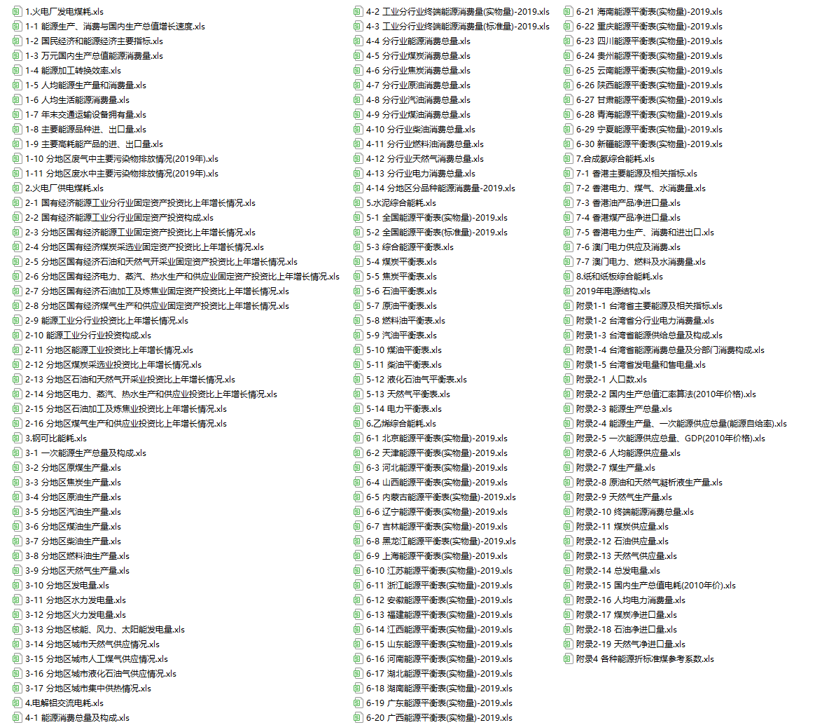 中国能源统计年鉴2020(excel格式)