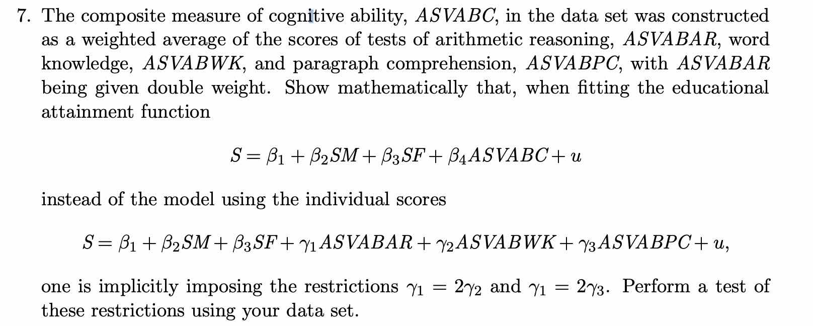 wald F-test/restriction test