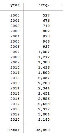 - 本文选取2000—2020年沪深两市的A股上市公司为研究对象。(因为是分年度分行业回归,所以需要哪几年的结果可以直接使用)