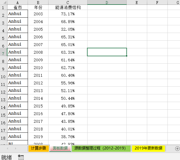 2003-2019年全国30省市分地区能源结构(煤炭占比).xlsx