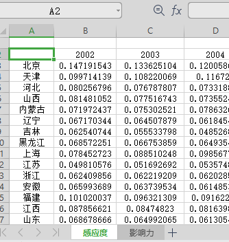 我最终根据02、07、12、17年的投入产出表,计算出来2002-2017所有年份的生产性服务业对制造业的感应度和影响力系数,中间缺失年份的数据按照上述方法进行了填补。最终可做省级的面板