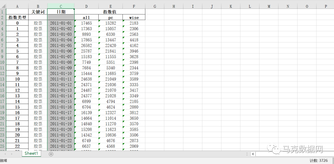 数据名称:百度指数每日数据