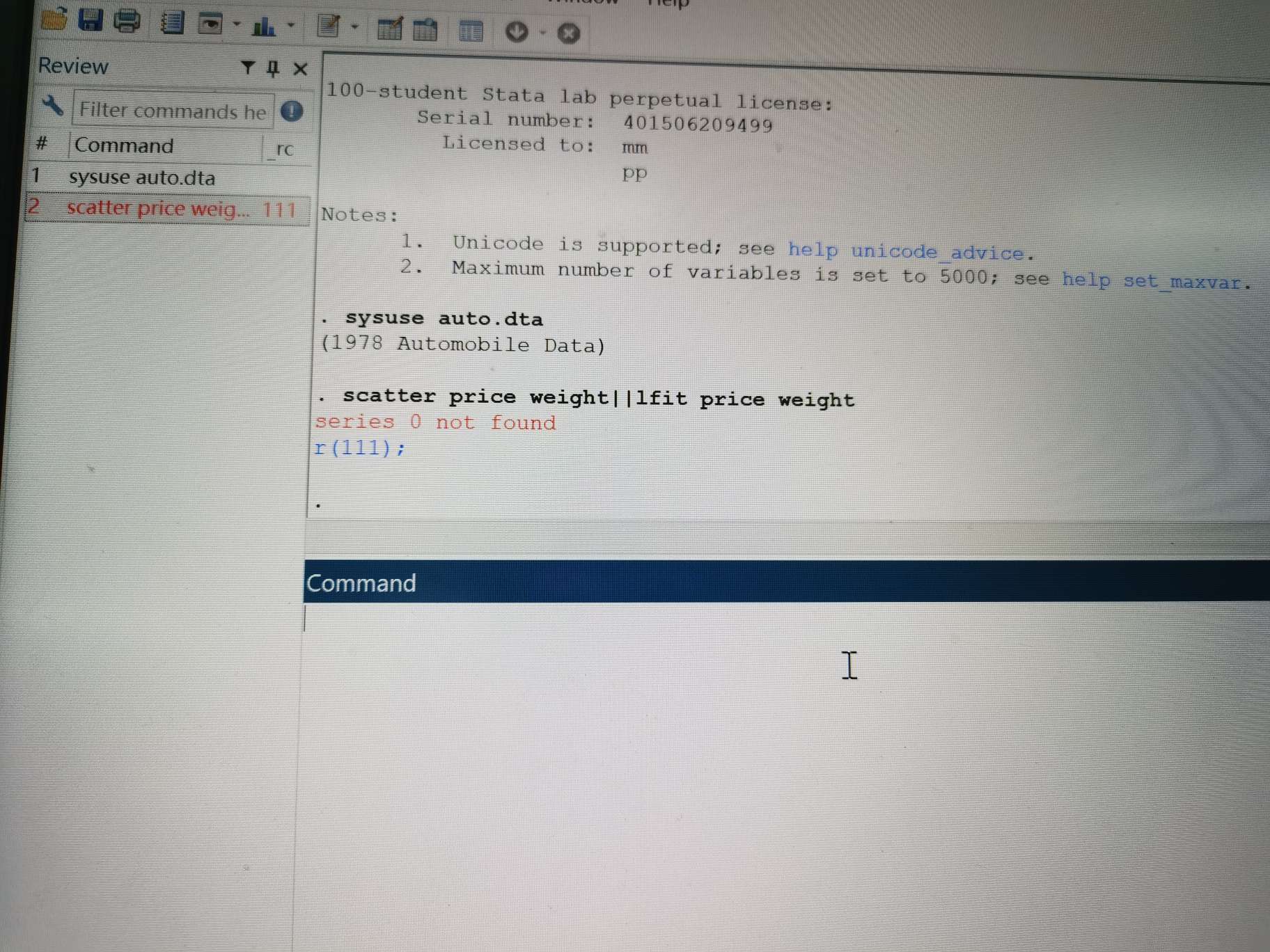 利用系统的auto.dta数据做散点图和回归直线的拟合图,出现series 0 not found r(111)的错误
