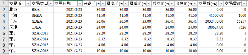 guohaoli1992 发表于 2021-6-3 17:51 利用爬虫从各个交易试点网站爬取的中国碳市场日度交易数据,包括各个试点碳市场每日的交易类型、交易量、交 ...