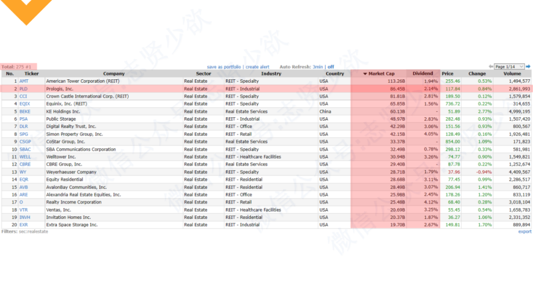市值第二大的REITs PLD(安博)864亿美元,底层资产是物流设施。