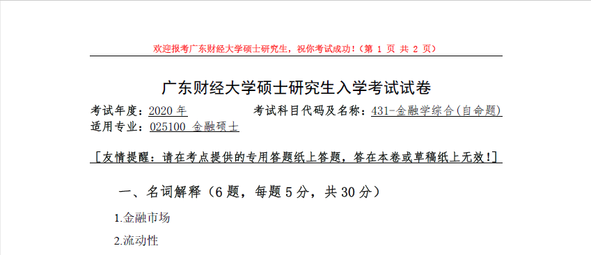 431-金融学综合(广东财经大学2020年硕士研究生入学考试试卷).rar