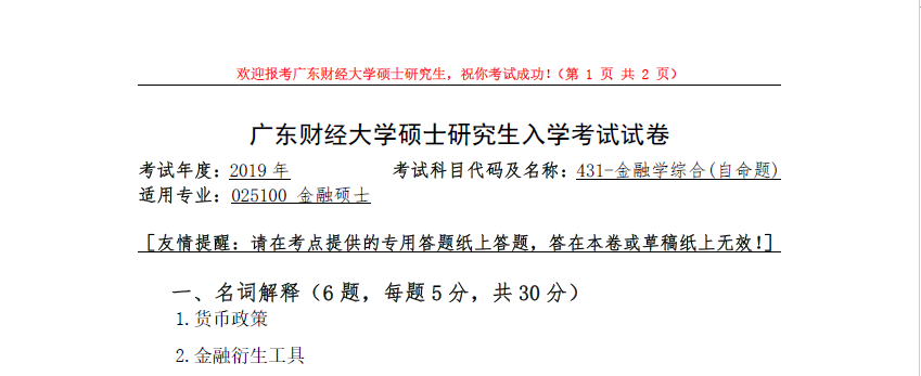 431-金融学综合(广东财经大学2019年硕士研究生入学考试试卷).rar