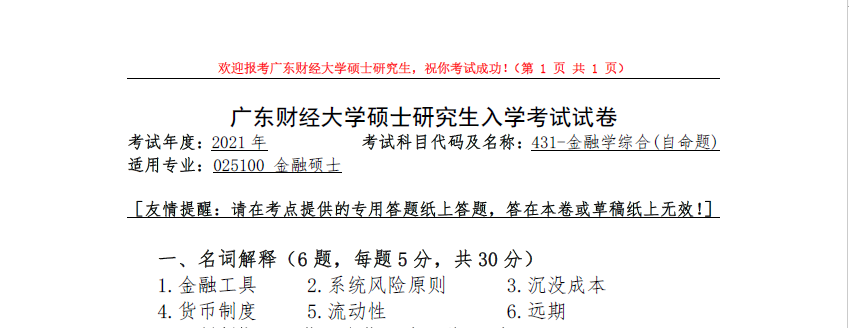 431-金融学综合(广东财经大学2021年硕士研究生入学考试试卷).rar