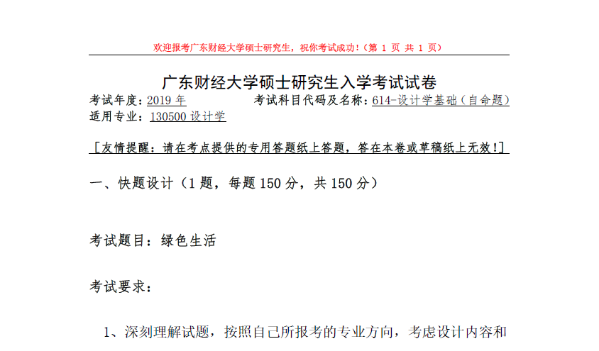 614-设计学基础(广东财经大学2019年硕士研究生入学考试试卷).rar