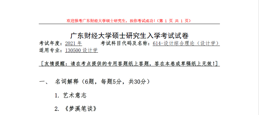 614-设计综合理论【设计学】(广东财经大学2021年硕士研究生入学考试试卷).rar