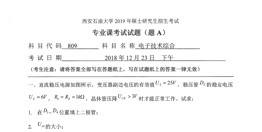 809 电子技术综合(西安石油大学2019年硕士研究生招生考试专业课试题).rar