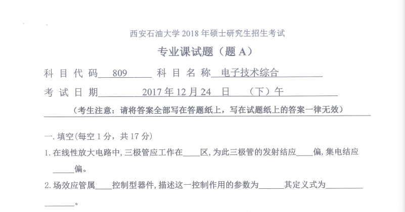 809 电子技术综合(西安石油大学2018年硕士研究生招生考试专业课试题).rar