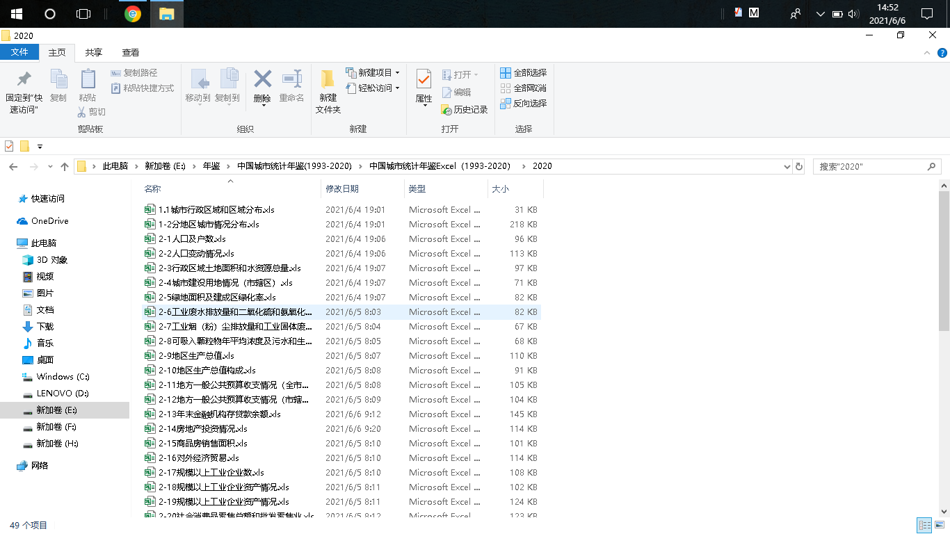 城市统计年鉴2020,Excel版本