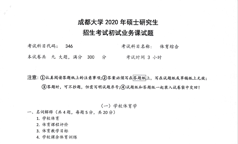 346 体育综合(成都大学2020年硕士研究生招生考试初试业务课试题).rar