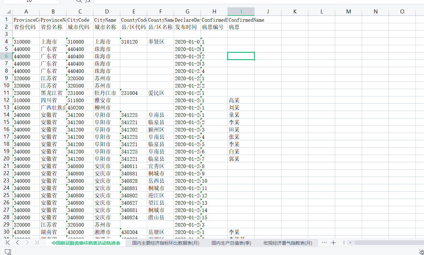 2020/1/10-2/2(中国新冠肺炎确诊病患活动轨迹表)