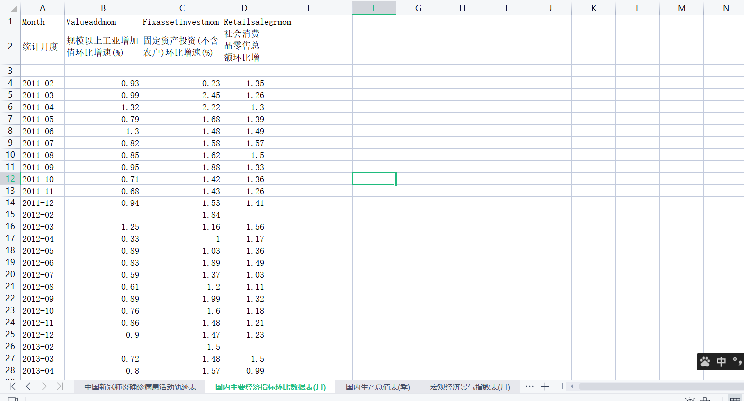 2011/2-2021/3(国内主要经济指标环比数据表(月))