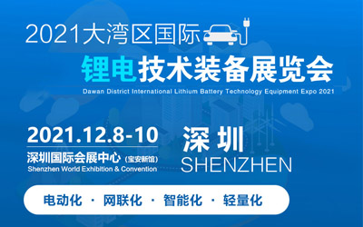 为了更好的推动锂电池行业的发展,在得到相关主管部门的大力支持下,2021大湾区国际锂电技术装备展览会将于2021年12月8~10日在深圳国际会展中心(新馆)隆重举行,欢迎相关单位参观参展。