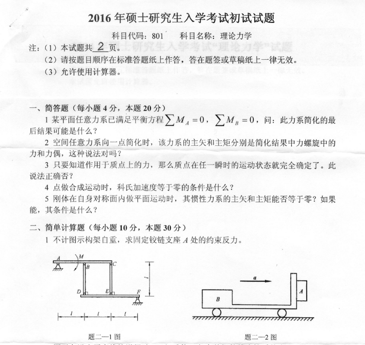 801 理论力学(燕山大学2016年硕士研究生入学考试初试试题).rar