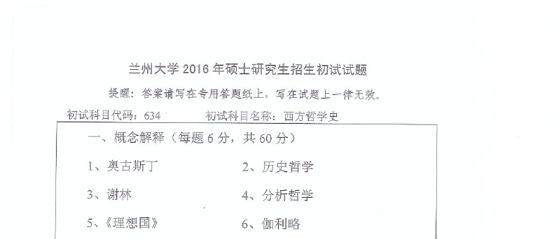 634 西方哲学史(兰州大学2016年硕士研究生招生初试试题).rar