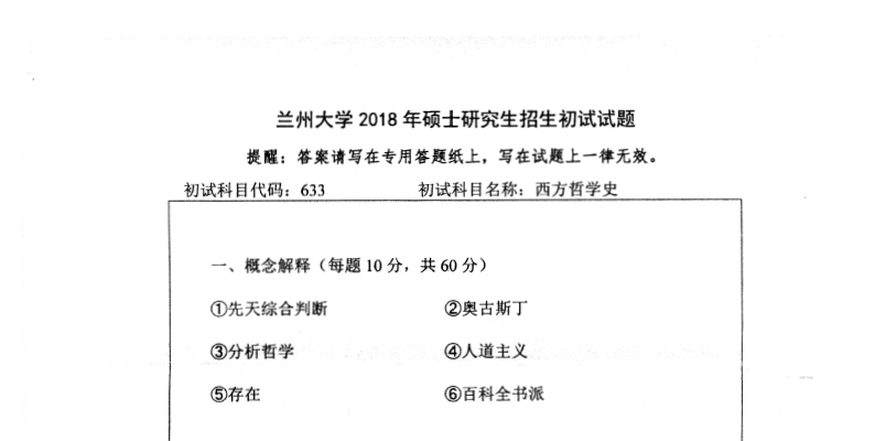 633 西方哲学史(兰州大学2018年硕士研究生招生初试试题).rar