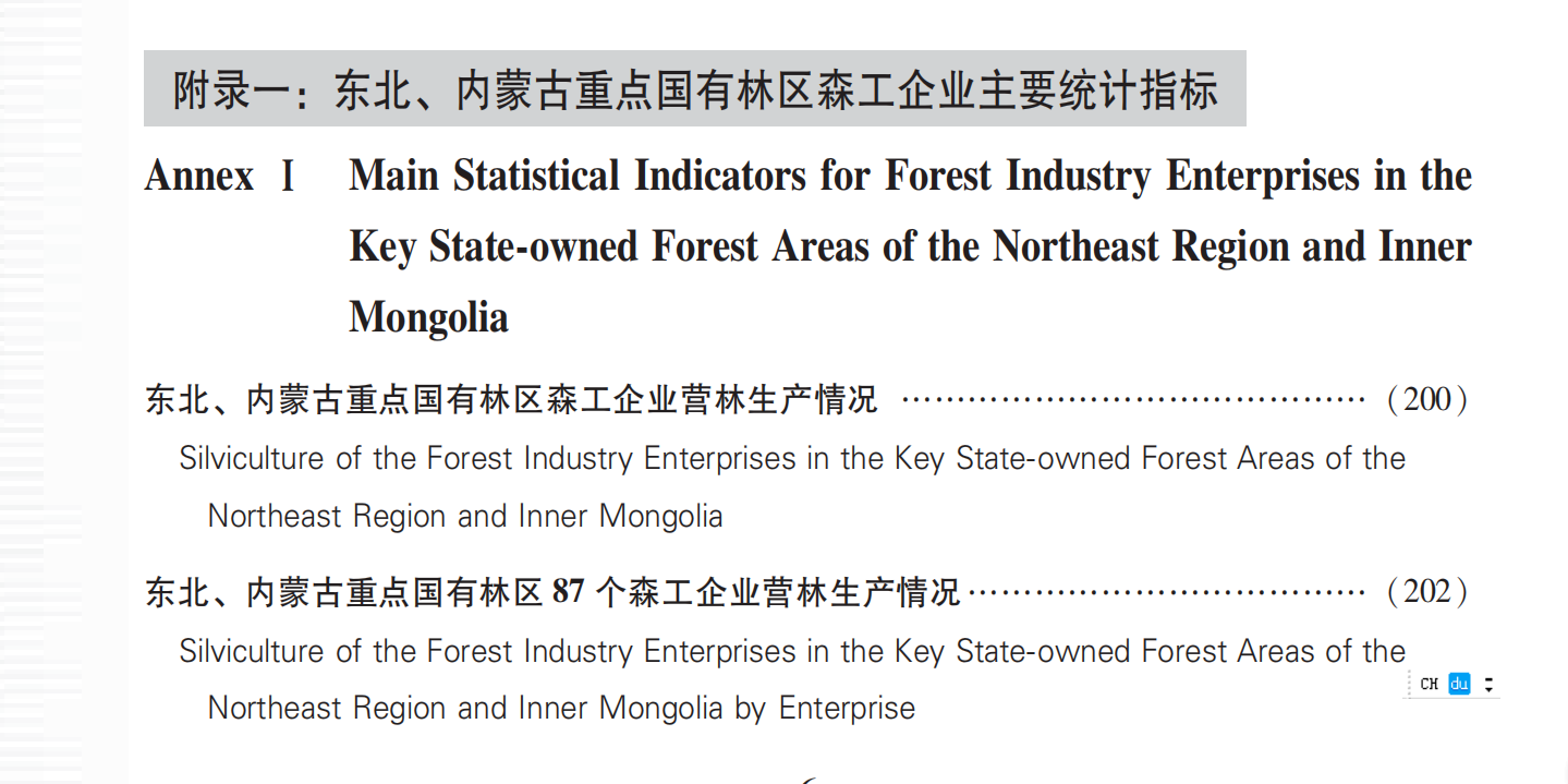 包括森林和湿地资源、生态建设、产业发展、从业人员和劳动报酬、林业投资、林业教育以及国有林区135个木材采运企业和20个重点营林局主要统计指标、林业工作站和乡村林场基本情况、森林主要灾害情况、全国分县造林情况、全国历年主要统计指标完成情况、野生动植物进出口情况等