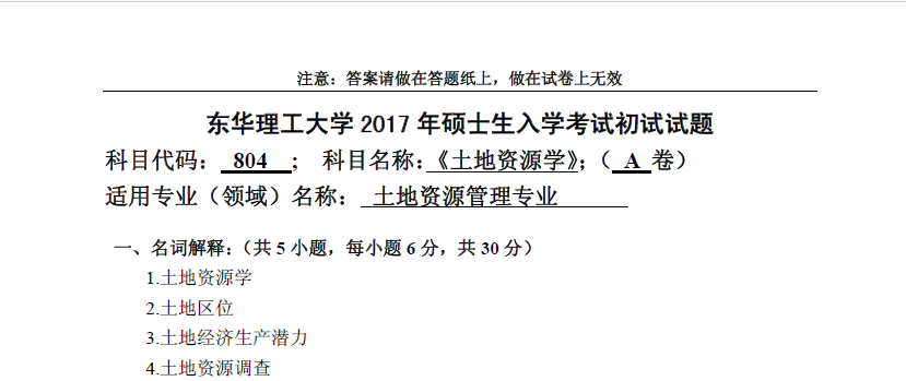 804土地资源学(东华理工大学2017年硕士入学考试初试试题).rar