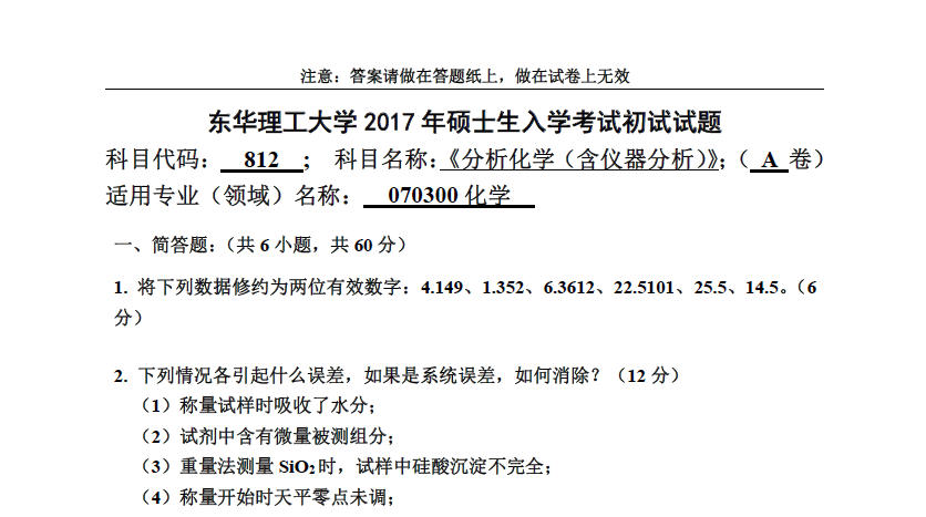 812分析化学【含仪器分析】(东华理工大学2017年硕士入学考试初试试题).rar