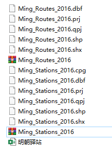 明朝286个城市驿站及道路的数量以及矢量图shp.rar