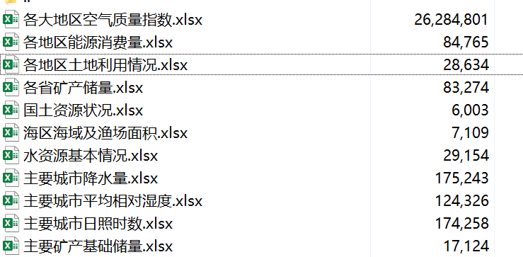 自然资源数据面板合集(包括空气、能源、土地、矿产、水、日照等)有excel、spss、以及文本版,方便各种软件直接导入使用