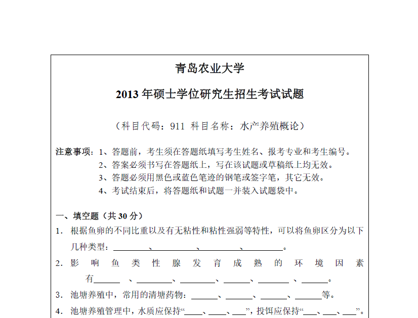 911-水产养殖概论(青岛农业大学2013年硕士学位研究生招生考试试题).pdf