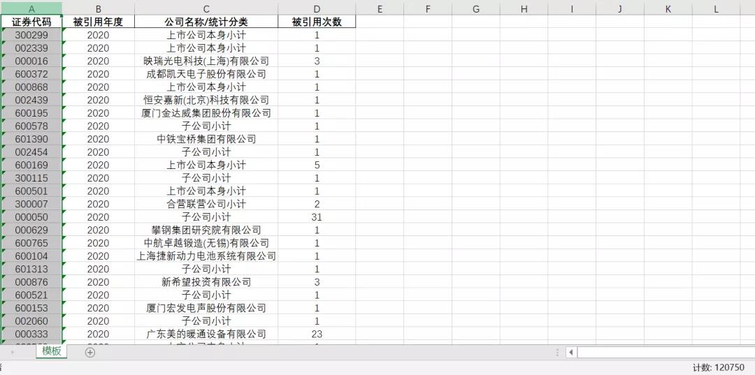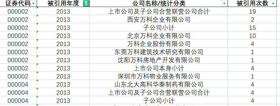 数据内容:企业名称、年份、引用次数