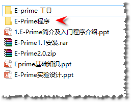 “E-Prime程序”文件夹为例,展开其中的内容如下:主要包括日常应用程序