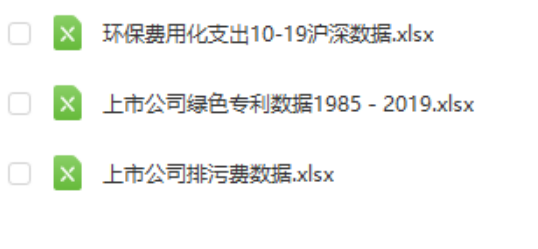 今天为论文努力了吗 发表于 2021-6-17 16:59 包括1985-2019上市公司绿色专利授权量、2010-2019排污费数据、2010-2019环保费用支出. 2001-2018上市公司绿 ...
