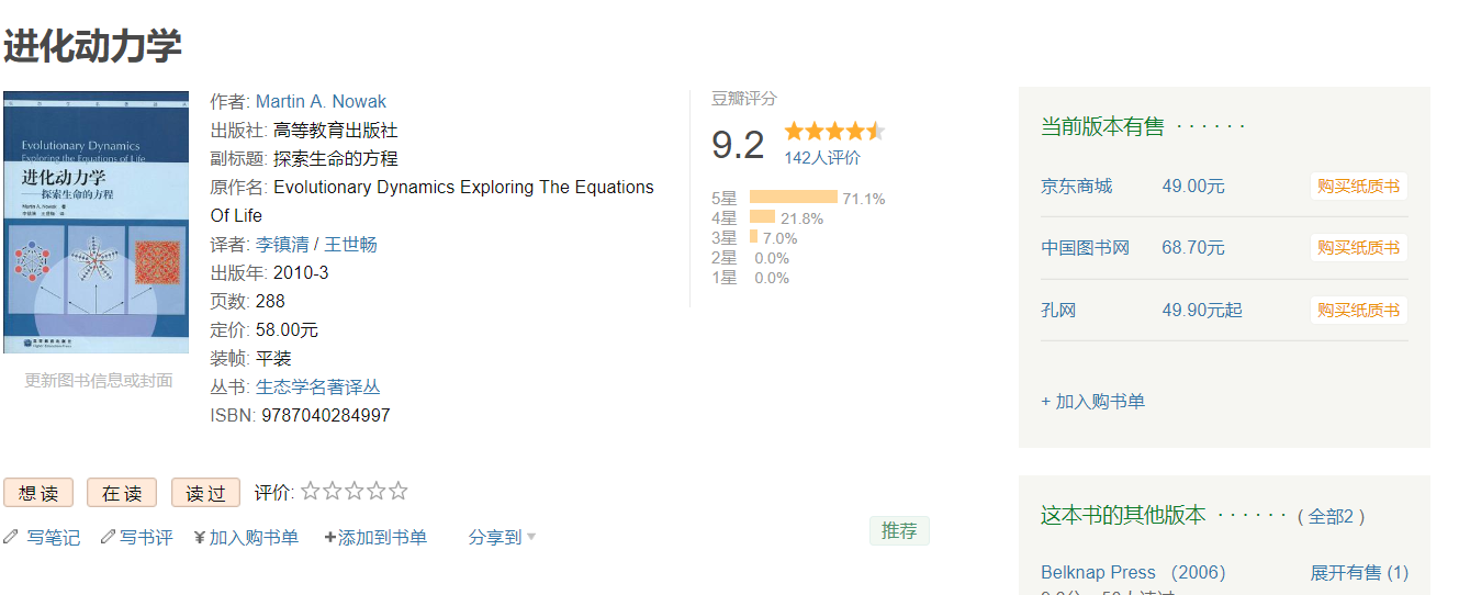 谁能发一本演化博弈论的入门书籍,没有财富啊