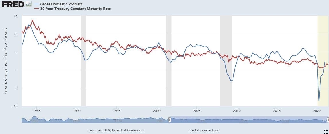 https://www.cbo.gov/system/files/2021-02/56970-Outlook.pdf 但拜登政府在产出缺口不到2%的情况下,出台了1.9万亿(超过GDP的9%)的天量财政刺激计划,美国去年的财政赤字已经高达GDP的14.95%,在美国历史上只有二战期间的财政赤字才有这么高,